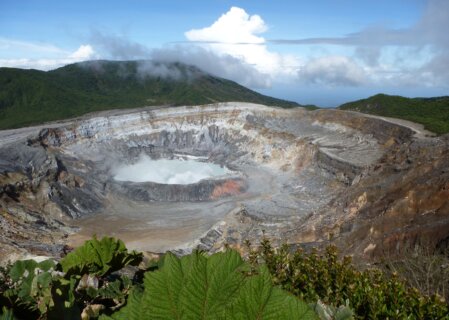 Der Vulkan Poás in Costa Rica beeindruckt mit einem gewaltigen Hauptkrater im Norden, der etwa 1.500 Meter Durchmesser hat. In seinem Inneren liegt der sogenannte Laguna Caliente, ein Kratersee, der mit seinem pH-Wert von unter 1 zu den sauersten Seen der Erde gehört. Der See ist Teil eines dauerhaft aktiven hydrothermalen Systems. Das bedeutet, dass heißes Wasser und Gase aus dem Erdinneren aufsteigen und den Kratersee ständig verändern. Diese Bedingungen wie z. Bsp. der pH-Wert sind für die meisten Lebewesen extrem lebensfeindlich. Wissenschaftler interessieren sich deshalb besonders für diesen Kratersee, weil man vermutet, dass hier ähnliche chemische und physikalische Bedingungen herrschen könnten, wie auf der frühen Erde oder sogar auf dem Mars.