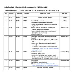 Zeitplan DVG Exkursion Niederschlesien im Frühjahr 2026