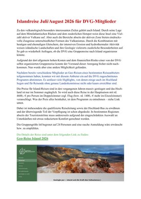 28.07.- 08.08.2026 | Vulkanologische Spezial-Exkursion nach Island | |